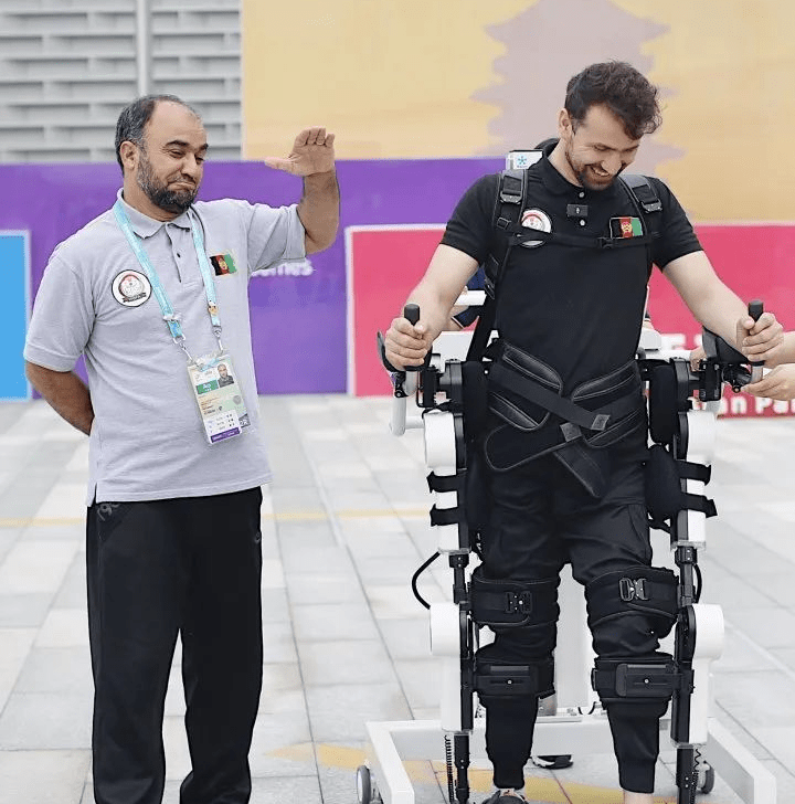 17岁那年,阿卜杜勒从屋顶上摔下来,自此下肢瘫痪残疾。13年后在亚残运村里,已经30岁的阿卜杜勒,第一次在外骨骼机器人的辅助下,做到了直立行走。阿卜杜勒表示:“自从坐上轮椅后,这是我第一次尝试行走。有时候我会尝试站起来,但从来没有走过路。”