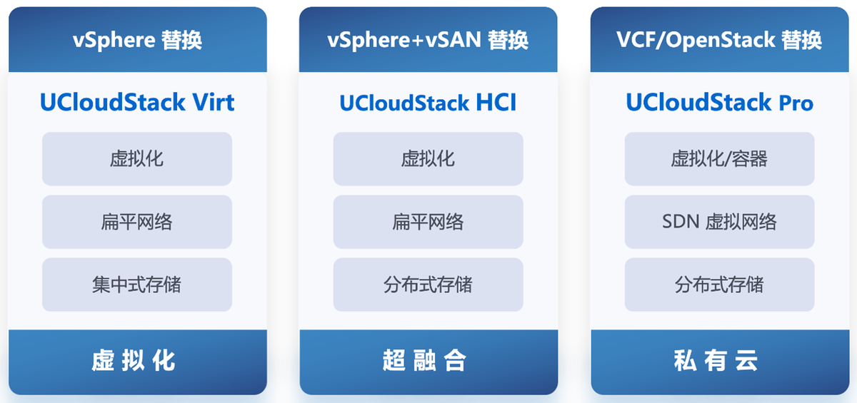 本着“客户的需求就是我们下一个产品”的理念,优刻得积极响应客户对于自主可控的国产化云计算解决方案的诉求,推出基于公有云架构的UCloudStack系列产品,涵盖虚拟化(UCloudStack Virt)、超融合(UCloudStack HCI)及全栈私有云(UCloudStack Pro)三个版本,旨在为国内用户提供更具创新性、安全性又符合本土需求的云计算解决方案。